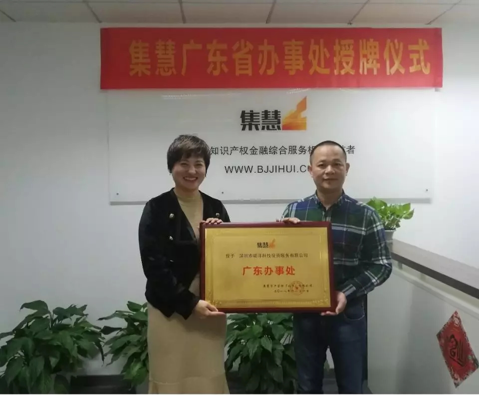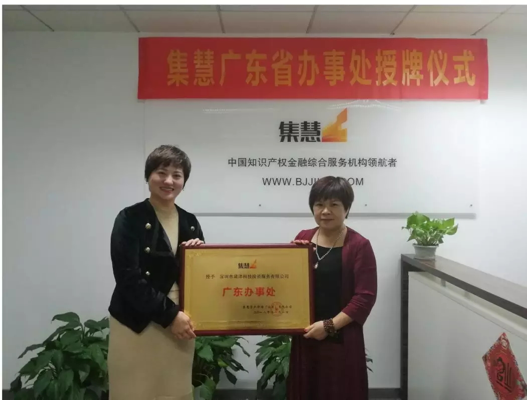 集慧广东省办事处暨靖洋集慧位于特区深圳市龙岗区,公司十余年来,联合广东省各级开发区、协会、联盟共同为数千家企业提供知识产权保护、资产评估、资产运营等多维度、一站式的无形资产运营服务,为上百家企业通过知识产权融资累计融资金额数十亿。靖洋十余年的知识产权资本运营工作对广东省知识产权金融创新及实践起到了至关重要的作用。