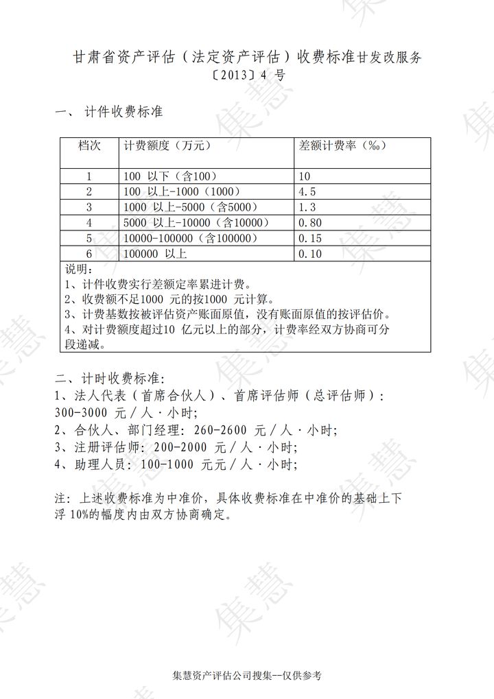 甘肃省近期正式出台新的资产评估收费标准。新收 费标准于2013年1月开始执行。