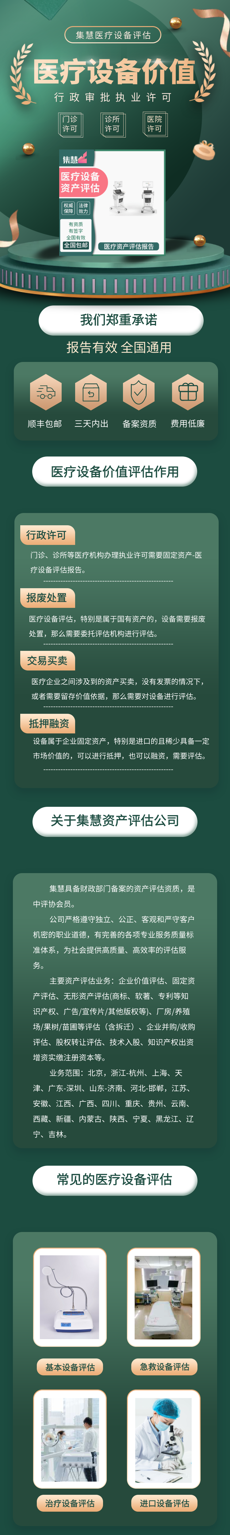 在医疗体制改革、医院改制以及医院各种产权变动的行为 中诸如:资产交易行为、银行的抵押贷款业务、财产保险业务、 股份公司的设立与股票的发行、兼并行为和合伙制医院的设 立、医院特殊帐务处理以及医院管理上的需求等等,医疗设备 的价值评估已在一个比较广泛的范围内发挥作用。为了满足这 种市场需求,特别是为了保证大量的国有资产在进入市场时能 够合理地保值增值,人们要求对医院医疗设备的价值做出一个 公平、公正、客观的评估。