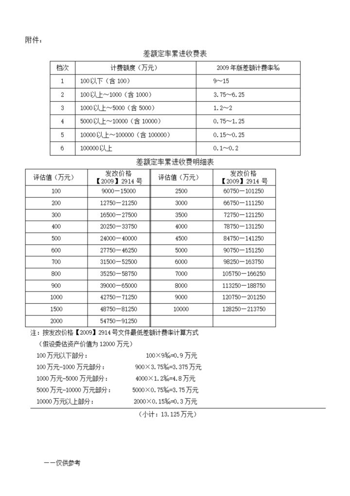 但为了方便计算,一般都是直接按照比例计费的,(千分之一到千分之八不等)因为市场竞争大,所以收费略比评估协会公布的收费标准要低。