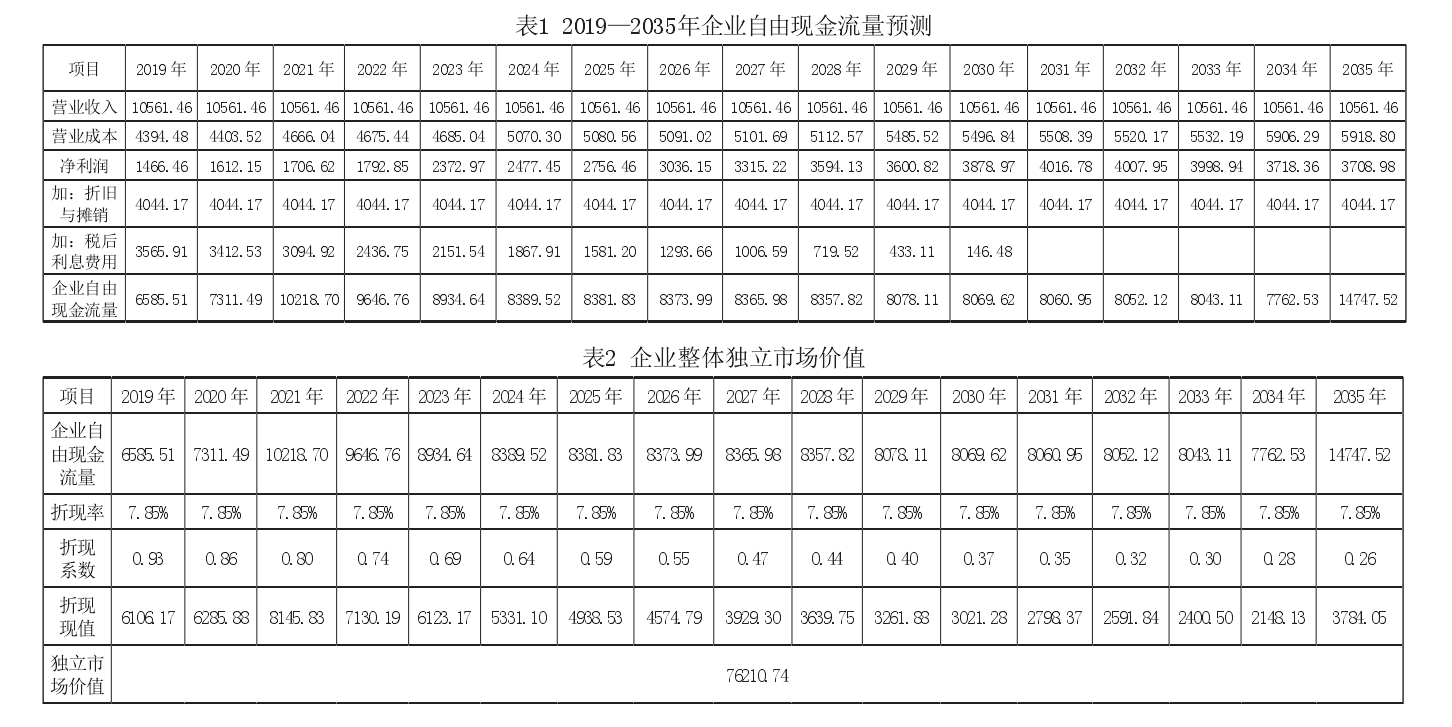 本文采用企业自由现金流量法对并购标的公司独立市场价值与投资价值进行评估。